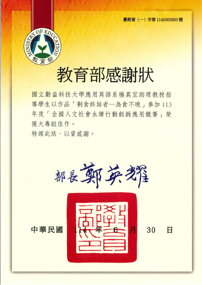 - 🧭 指導老師:楊真宜 助理教授